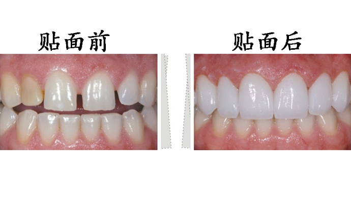 牙齿贴面,即是把牙齿表面磨掉1mm、甚至不磨,贴上白白的一层薄片,牙齿看起来就很洁白。